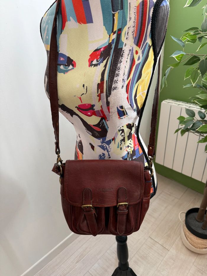 Sac à bandoulière vintage en cuir bordeaux Henry & Martin's - photo numéro 5