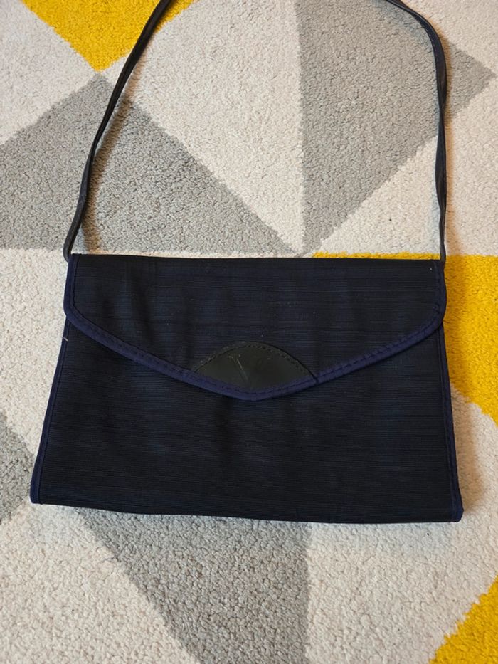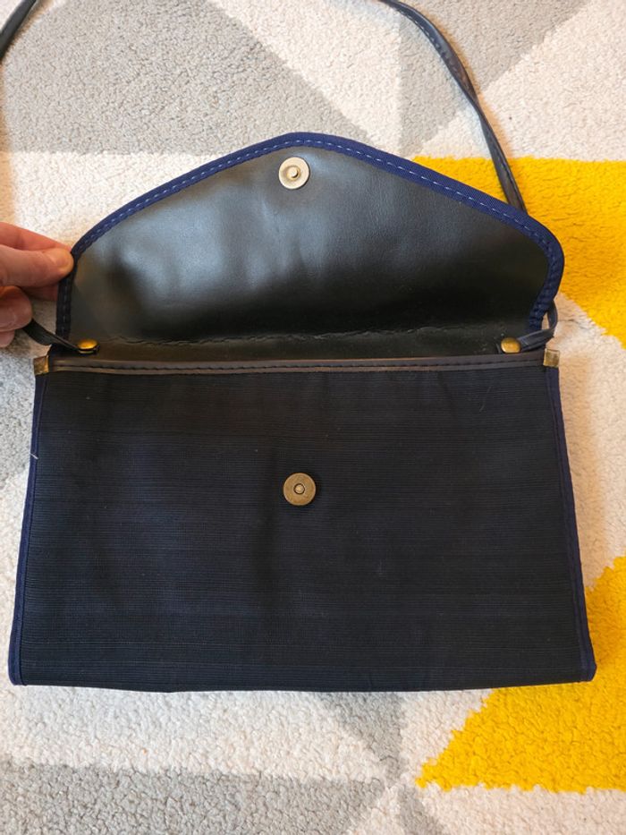 🎁 -5% de réduction pour les abonnés Pochette à bandoulière vintage Taille : Largeur : 31 cm - Hauteur : 20,5 cm Couleur : Bleu marine Matières : Cuir synthétique et toile État : Bon état (quelques traces d'usures, voir photos) 💫Me contacter par message pour créer un lot : 💸 -10% dès deux articles achetés! 💸 #Sac #sacàmain #sacfemme #bag #bandouliere #pochette #vintage