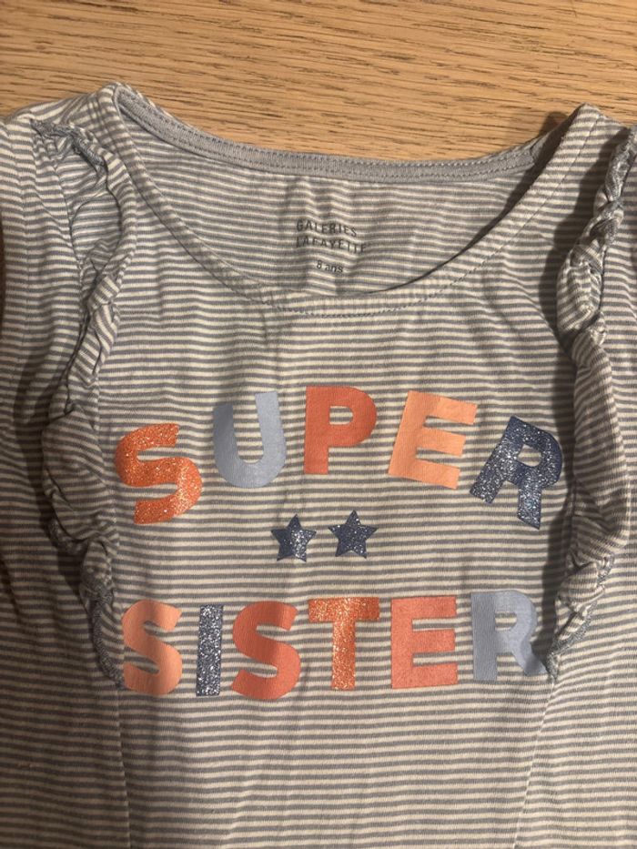 Jolie robe d’été Rayé bleu/ blanc Inscription Super Sister sur le devant Taille 8 ans #galerieslafayette