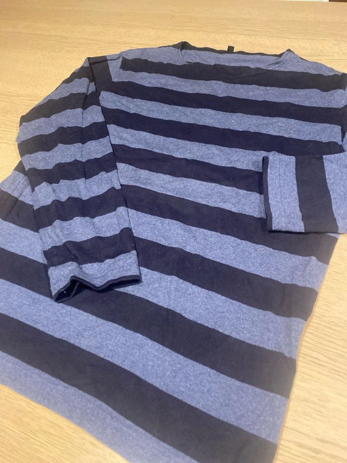 #uniqlo Pull fin homme Rayé bleu clair - bleu foncé Taille L 100%coton