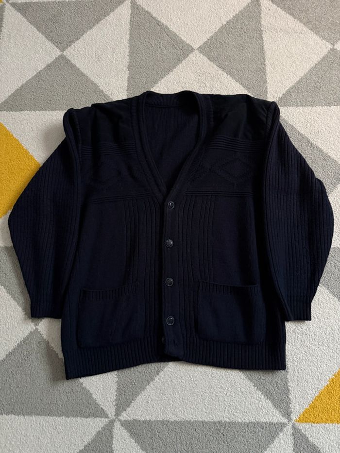 🎁 -5% de réduction pour les abonnés Cardigan vintage en laine Taille : Unique Couleur : Bleu marine Matières : Voir photo étiquette État : Très bon état 💫Me contacter par message pour créer un lot : 💸 -10% dès deux articles achetés! 💸 #cardigan #vintage #laine #tailleunique