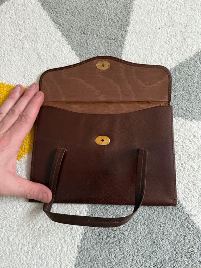 Petit porte-documents en cuir vintage Taille : Largeur : 21,5 cm - Hauteur : 15 cm Couleur : Marron Matières : Cuir État : Bon état (quelques traces d'usures, voir photos) 💫Me contacter par message pour créer un lot : 💸 -10% dès deux articles achetés! 💸 #Sac #sacàmain #sacfemme #bag #bandouliere #pochette #vintage