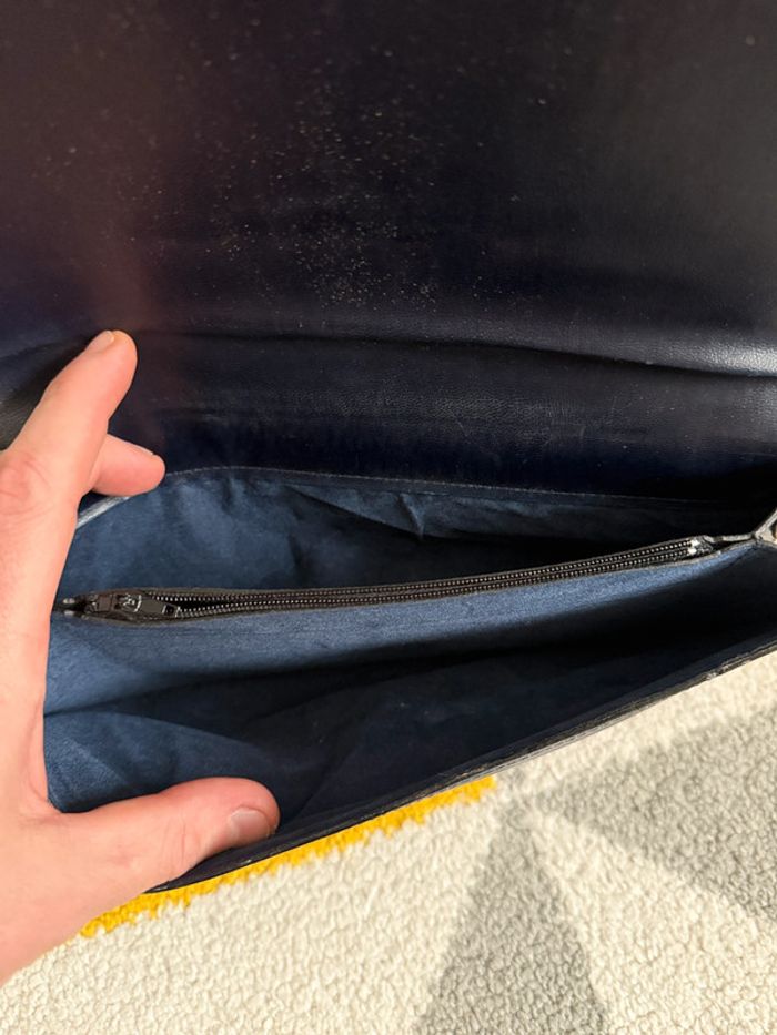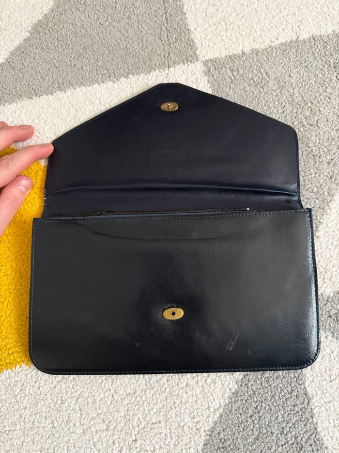Pochette en cuir vintage Taille : Largeur : 26,5 cm - Hauteur : 15,5 cm Couleur : Bleu marine Matières : Cuir État : Bon état (quelques traces d'usures, voir photos) 💫Me contacter par message pour créer un lot : 💸 -10% dès deux articles achetés! 💸 #Sac #sacàmain #sacfemme #bag #bandouliere #pochette #vintage