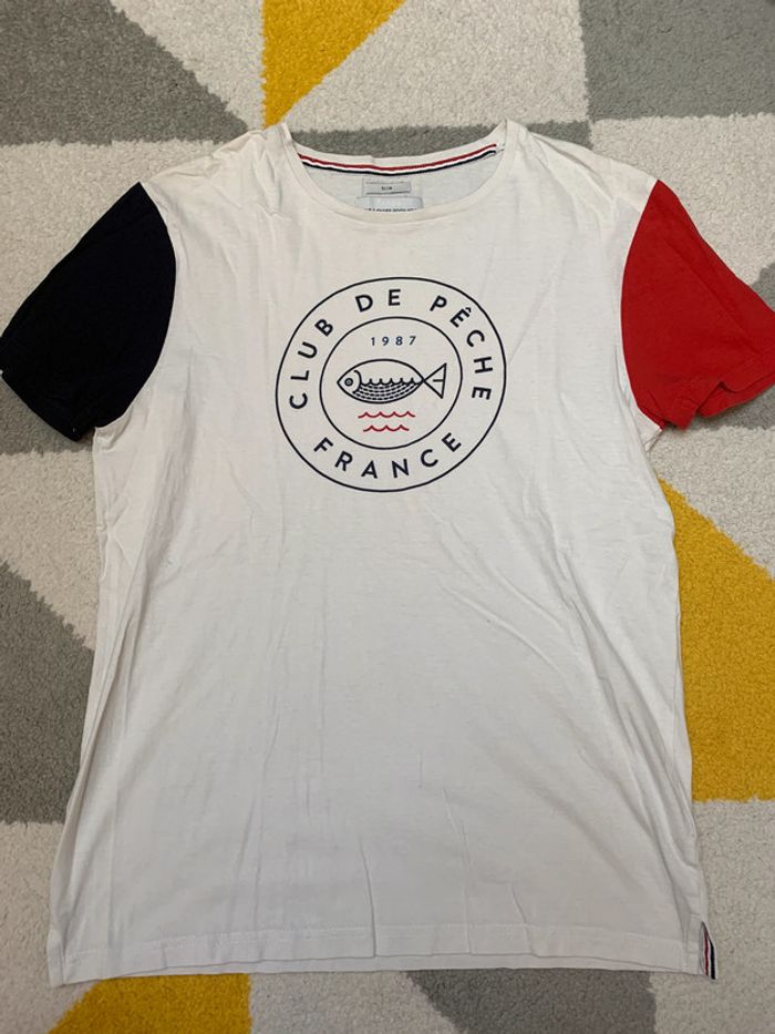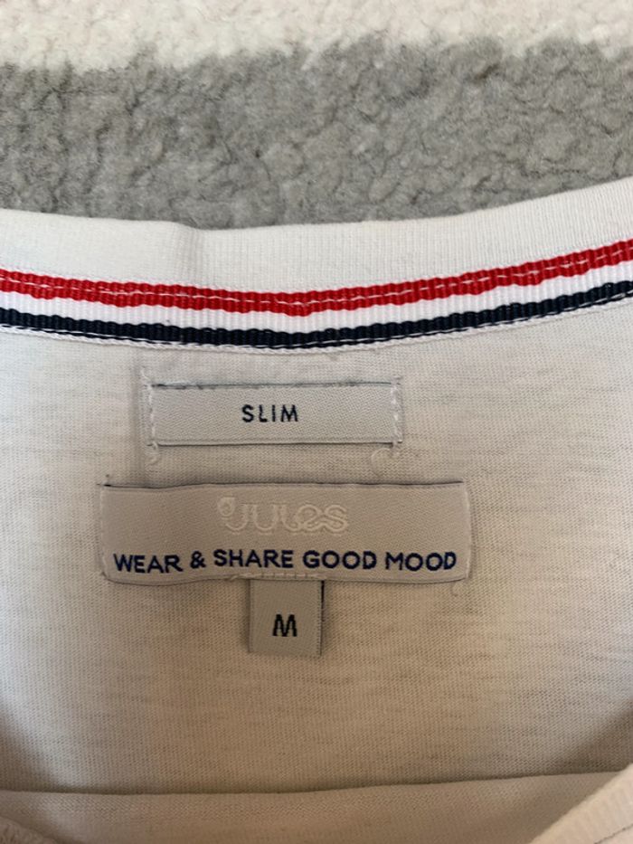 Tee-shirt Jules Univers : Hommes Taille : M - Coupe Slim Fit Couleur : Blanc, bleu marine et rouge Matières : - État : Très bon état 💫Me contacter par message pour créer un lot : 💸 -10% dès deux articles achetés! 💸 #Tee-shirt #Jules #Large