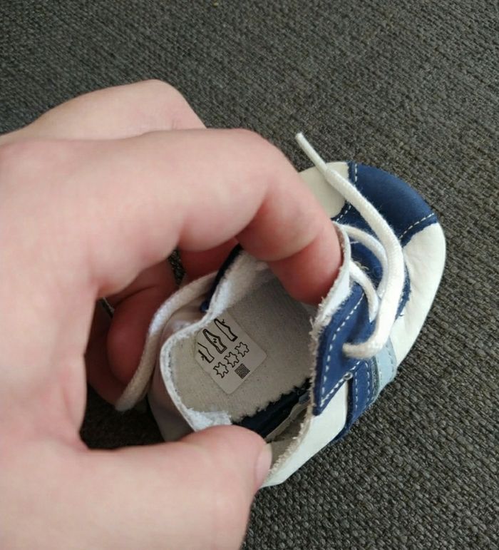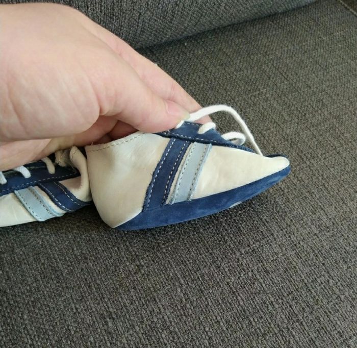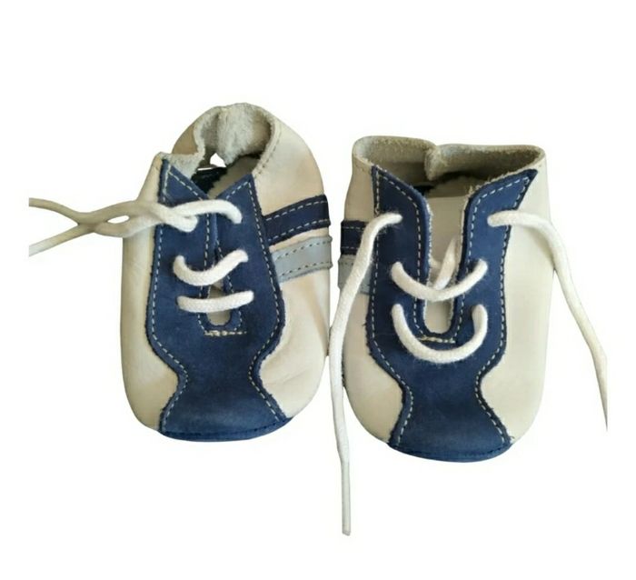 Chaussure blanche et bleu en cuir En parfait état Taille 16-17