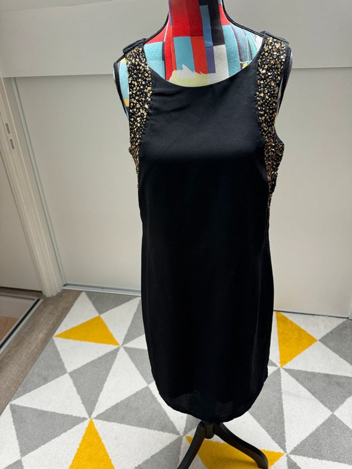 🎁 -5% de réduction pour les abonnés Robe estivale Cache cache Taille : S / 36 / 8 Couleur : Noir et doré Matières : Voir photos étiquettes État : Très bon état 💫Me contacter par message pour créer un lot : 💸 -10% dès deux articles achetés! 💸 #robe #été #cachecache #small