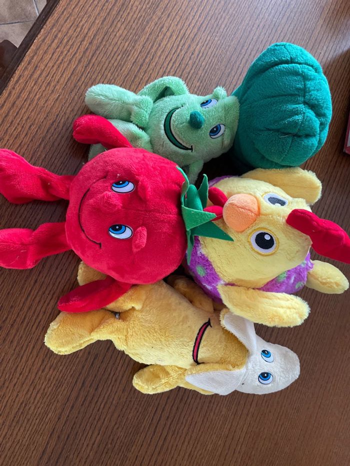 Lot de 4 peluches légumes, fruits et animaux - photo numéro 1