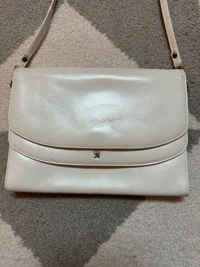 Sac à bandoulière vintage en cuir Assima Taille : Largeur : 22 cm - Hauteur : 16,5 cm Couleur : Blanc Matières : Cuir État : Satisfaisant (quelques traces d'usures, voir photos) 💫Me contacter par message pour créer un lot : 💸 -10% dès deux articles achetés! 💸 #sac #sacamain #sacfemme #bag #bandouliere #pochette #vintage #assima #cuir
