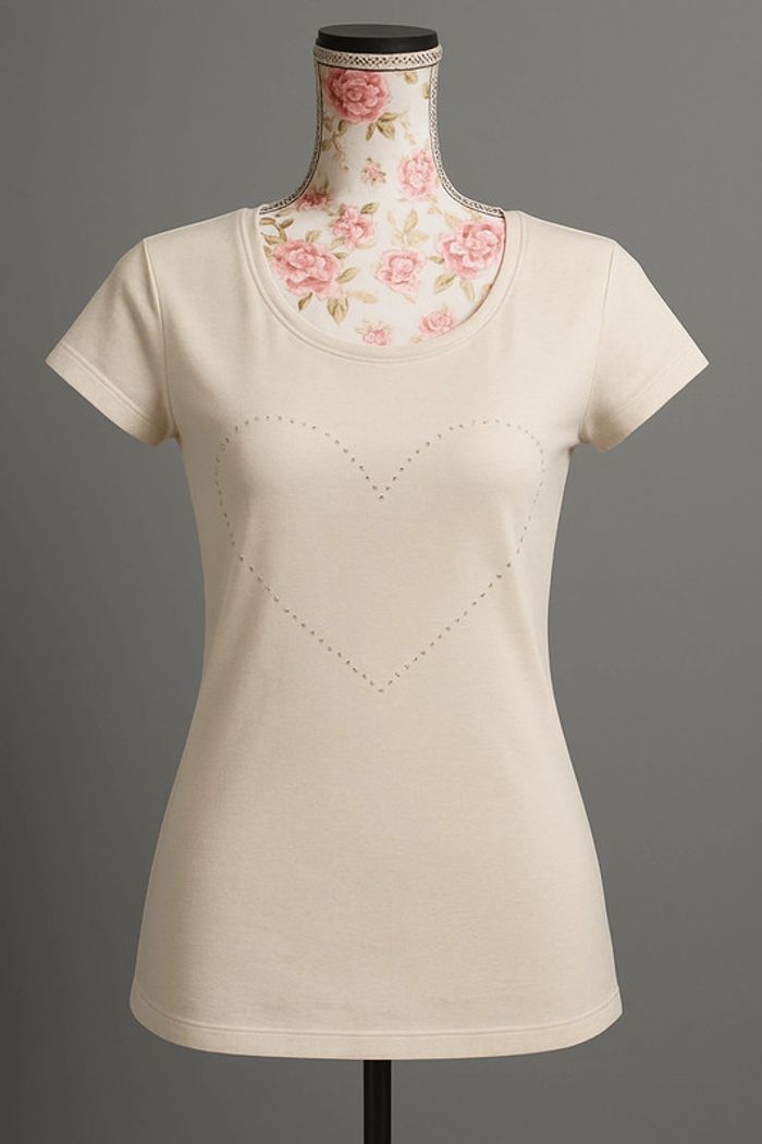🌟 T-shirt femme blanc – col rond – motif cœur 🌟