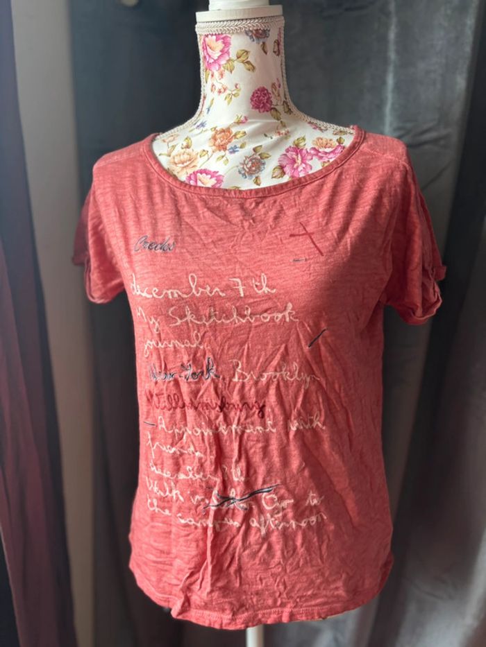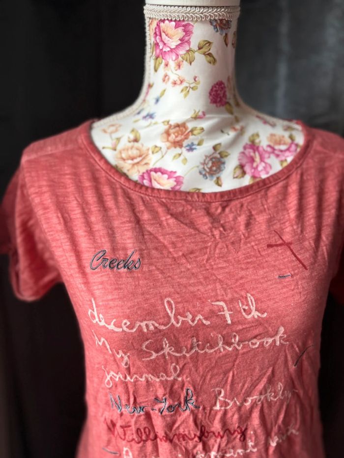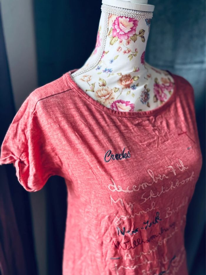 Jolie tee shirt rose corail creeks Avec Écriture Taille 36/38 #teeshirtfemme