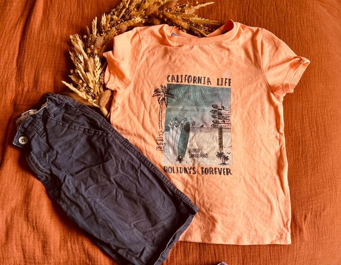Tee shirt orange sergent Major 5 ans Bermuda bleu marine denim 5/6 ans #ensemblegarçon