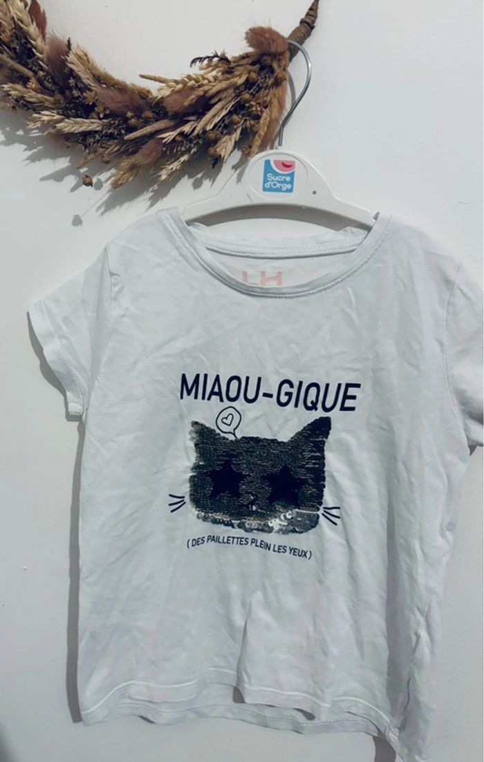 Un tee shirt avec motif chat sequins la halle Un short rose en coton in extenso 6 ans #ensemblefille