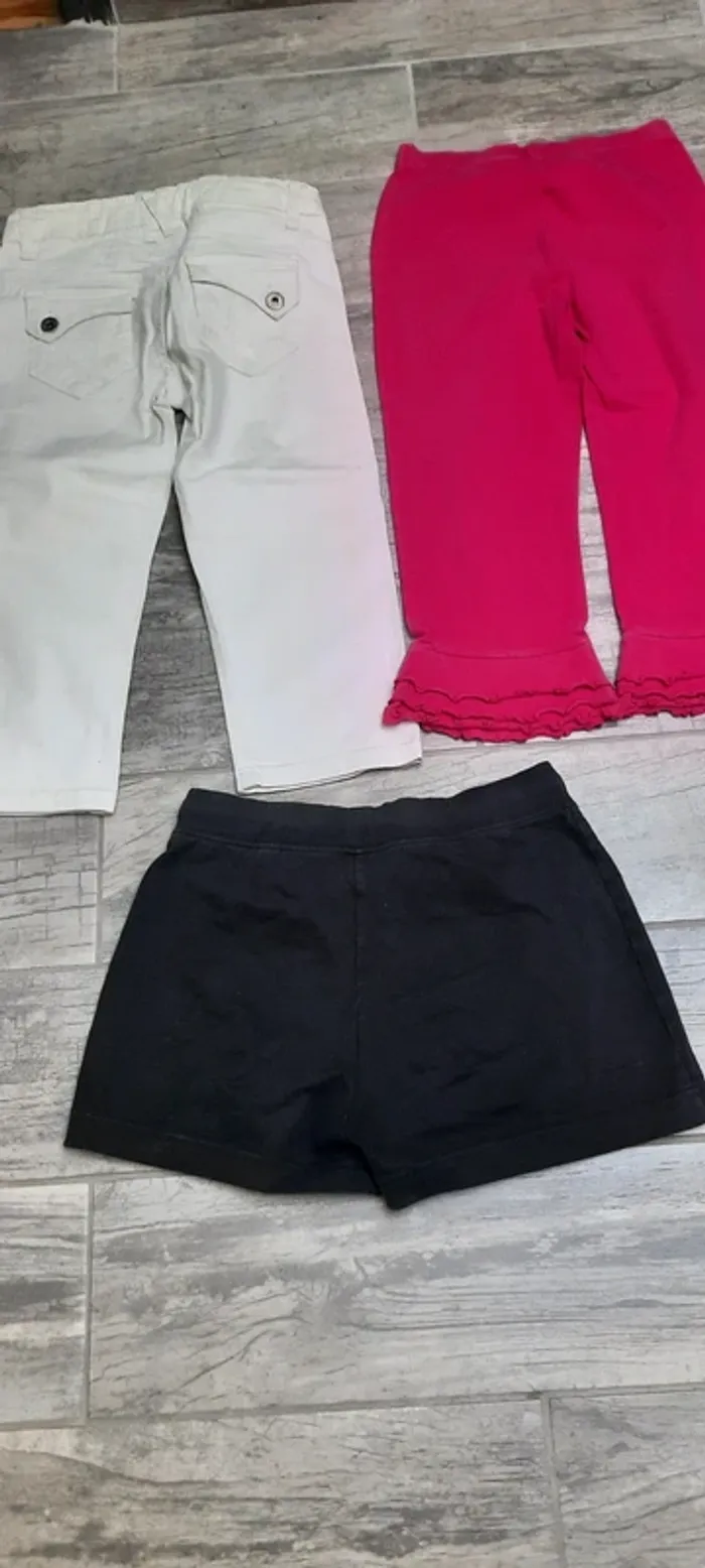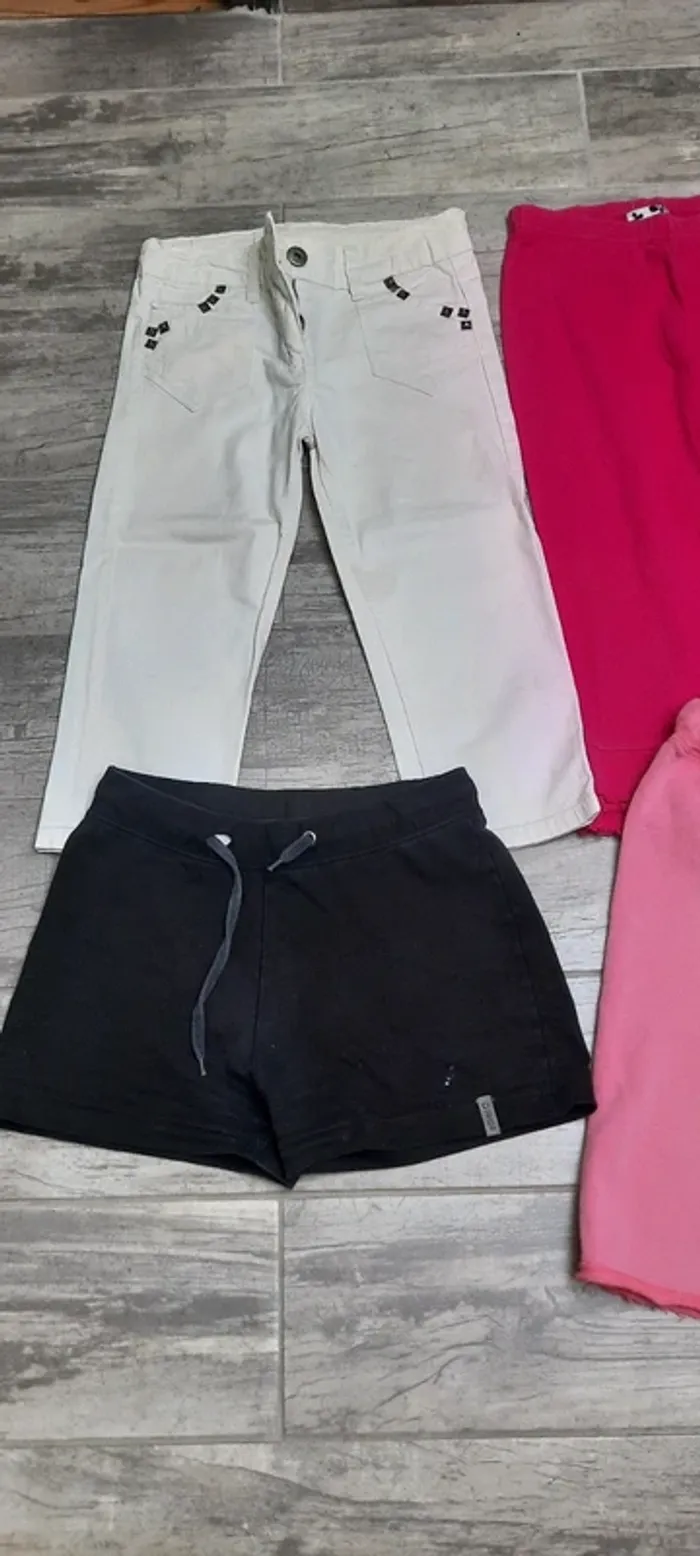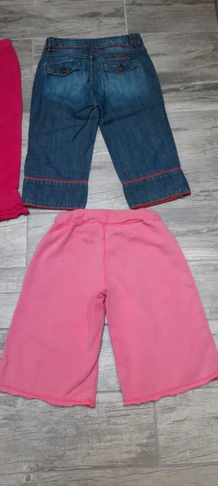 10 ans. 3 pantacourts ( Kiabi, vinyl fraise et sergent major) un short ( etirel) avec tâche devant et un bermuda ( Okaidi).