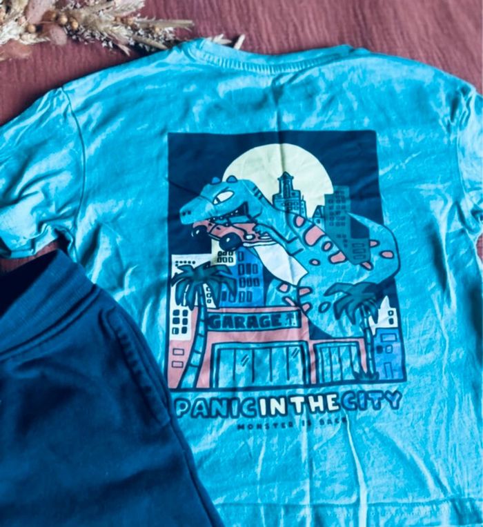 ✨ À vendre un super ensemble confortable et tendance pour petit aventurier : 👕 Tee-shirt Kiabi 6 ans • Coloris : Vert d’eau frais 🌿 • Motif fun : Dinosaure géant en pleine ville – effet “Panic in the City” garanti ! • Matière douce et agréable, parfait pour l’été. 🩳 Short Gemo 6 ans • Coloris : Bleu marine profond • En coton léger, très confortable • Taille élastique avec cordon : facile à enfiler, idéal pour bouger librement. 🧺 Très bon état – peu porté, aucune tache ni accroc. 💡 Parfait pour les sorties, vacances, ou journées à l’école avec style ! 📦 Envoi rapide & soigné 🔎 #ensembleetegarcon #dino #kiabi #gemo #6ans #été #lookgarçon