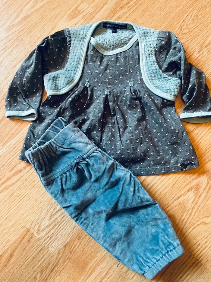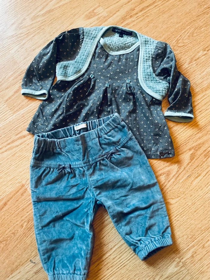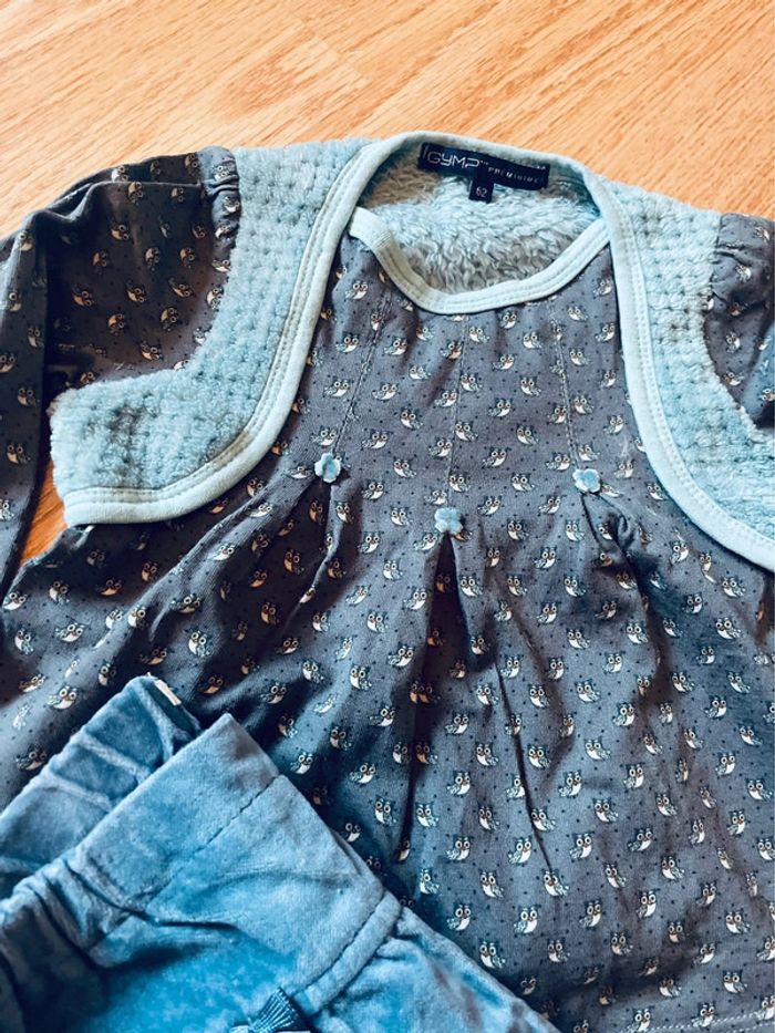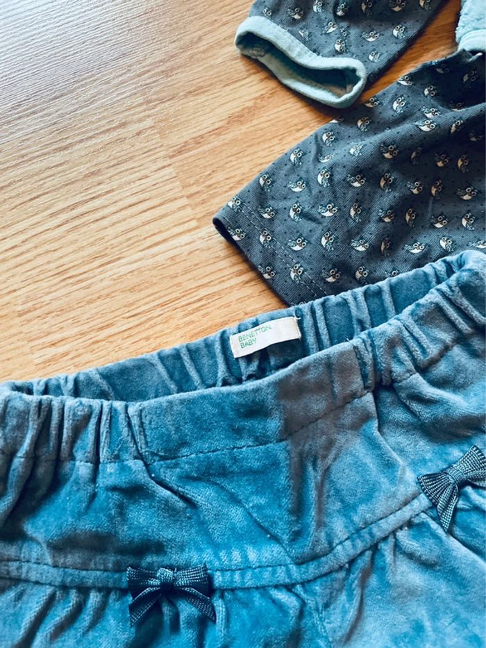 Pantalon tout doux avec jolies details 1/3 mois benetton baby Blouse 3 mois (62 cm) grise avec motif 🦉 #benettonbaby