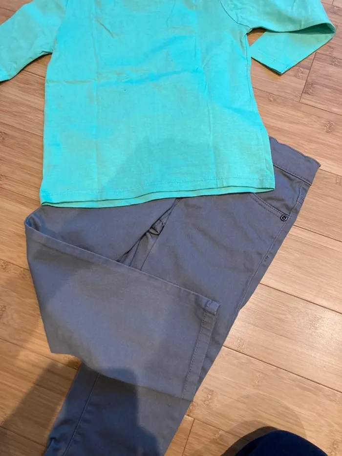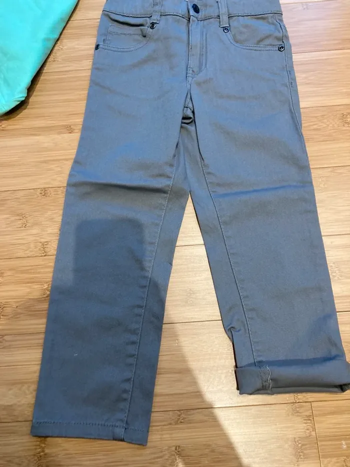 👉 Merci de prendre le temps de lire le descriptif : Ensemble 2 pièces pantalon gris avec bouton de réglage taillant comme du 6 ans et t-shirt manche longue assorti Article en très bon état; pas de tâche, trous ou autres défauts. 📦Je ne propose que des envoie en Mondial Relay ou ups PAS HOMER ou vinted go, j’expédie vos colis au plus tard dans les 48 heures. Nos bambins grandissent si vite, qu’il est inutile d’attendre vos articles commandés. 👂Je vous écoute pour toutes questions, je tente de ne pas vendre un chat dans un sac en prenant le temps de prendre et mettre les photos avec un descriptif complet du moins j’essaye 😊 et donc ici vous êtes sur un profil de personne qui tente de vous décrire au mieux les articles. 🧚🏻‍♀️ J'évite les baisses de prix, mes prix sont ajustés au plus juste selon les articles et restent très abordables. Les frais Vinted pour les acheteurs font partie du jeu, je n'y remédie pas. 90% des plateformes en ligne demandent des frais de port, et les articles neufs sont plus onéreux et non négociables. 📌Je ne fais pas d’échange, la qualité de mes articles sont certains 😊, en vous souhaitant un Bon shopping et au plaisir de répondre à vos questions. 🗂Trouvez l’ensemble des mes articles sont ici : #liloubmenfants