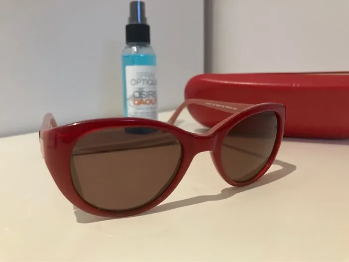 👉 Merci de prendre le temps de lire le descriptif : Lunettes solaire de bonne qualité rouge venant de chez un opticien - paire de lunette niveau 5 - avec étui, spray nettoyant neuf ainsi que sa lingette neuve également Article en très bon état; pas de tâche, juste la branche un peu mangée (voir photo, c'est pas ce qu'on pourrait penser, c'est léger sinon elles ne seraient pas dans le dressing) 👂Je vous écoute pour toutes questions, je tente de ne pas vendre un chat dans un sac en prenant le temps de prendre et mettre les photos avec un descriptif complet du moins j’essaye 😊 et donc ici vous êtes sur un profil de personne qui tente de vous décrire au mieux les articles. 🧚🏻‍♀️ J'évite les baisses de prix, mes prix sont ajustés au plus juste selon les articles et restent très abordables. Les frais Vinted pour les acheteurs font partie du jeu, je n'y remédie pas. 90% des plateformes en ligne demandent des frais de port, et les articles neufs sont plus onéreux et non négociables. 📦Je ne propose que des envoie en Mondial Relay ou ups PAS HOMER, j’expédie vos colis au plus tard dans les 48 heures. Nos bambins grandissent si vite, qu’il est inutile d’attendre vos articles commandés. 📌Je ne fais pas d’échange, la qualité de mes articles sont certains 😊, en vous souhaitant un Bon shopping et au plaisir de répondre à vos questions. 🗂Trouvez l’ensemble des mes articles sont ici : #liloubmenfants