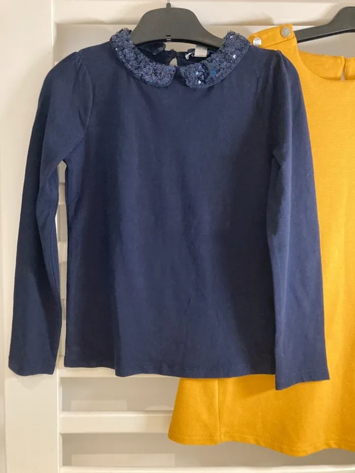 👉 Merci de prendre le temps de lire le descriptif : Set de 3 pièces assorties avec le format petit colis pour assurer un meilleur prix 1 robe jaune moutarde de chez okaidi, modèle simple et efficace en toutes circonstances 1 t-shirt bleu marine avec un col claudine pailleté, le col est cousu, il ne bougera donc pas 1 collant NEUF (juste déballé de son emballage) bleu marine assorti Article en très bon état; pas de tâche, trous ou autres défauts. 📦J’expédie vos colis au plus tard dans les 48 heures. Nos bambins grandissent si vite, qu’il est inutile d’attendre vos articles commandés. ET UN BONJOUR c'est top😉 👂Je vous écoute pour toutes questions, je tente de ne pas vendre un chat dans un sac en prenant le temps de prendre et mettre les photos avec un descriptif complet du moins j’essaye 😊 et donc ici vous êtes sur un profil de personne qui tente de vous décrire au mieux les articles. 🧚🏻‍♀️J'évite les baisses de prix, mes prix sont ajustés au plus juste selon les articles et restent très abordables. Les frais Vinted pour les acheteurs font partie du jeu, je n'y remédie pas. 90% des plateformes en ligne demandent des frais de port, et les articles neufs sont plus onéreux et non négociables. 📌Je ne fais pas d’échange, la qualité de mes articles sont certains 😊, en vous souhaitant un Bon shopping et au plaisir de répondre à vos questions.