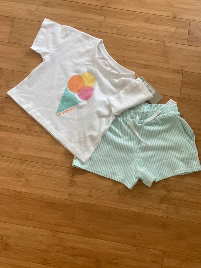 6 ans - ensemble 2 pièces estival avec sa petite glace en imprimé et le short assorti - neuf - photo numéro 1