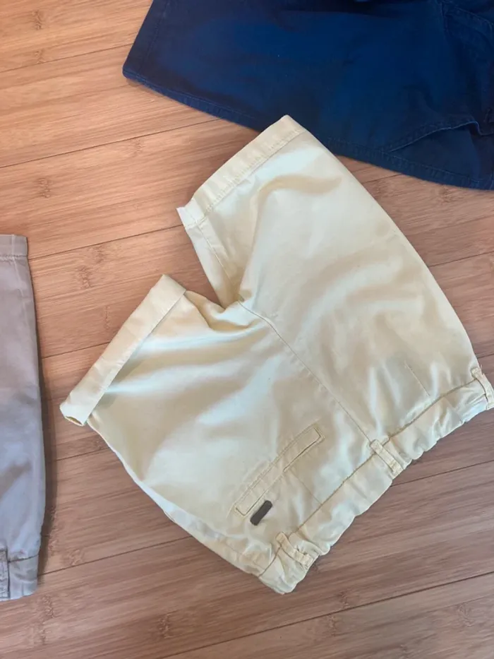 👉Merci de prendre le temps de lire le descriptif : Set de 3 bermuda (style modèle chino) garçon en coton twill uni à revers avec élastique de serrage en état neuf (preuve qu'ils n'ont fait qu'une famille) - 1 bleu marine - 1 jaune "vif" - 1 beige Pour tous les styles et toutes les occasions, adoptez le bermuda en coton twill uni ! Il s'associera aussi bien à un tee-shirt à motifs pour une allure casual qu’à une chemise en lin pour une tenue de cérémonie. Ce bermuda garçon possède des revers cousus en bas de jambe, gage d’une belle finition. Article en très bon état; pas de tâche (sauf pour le jaune = micro tâche qui se voir car il est repassé sinon invisible au porté), trous ou autres défauts. 1 annonce lot en format petit colis permettant économie et prix unitaire = 3.30 € donc petite affaire sympa à faire pour une garde-robe multi-usage avec ce type de modèle. 📦J’expédie vos colis au plus vite. Nos bambins grandissent si vite, qu’il est inutile d’attendre vos articles commandés. ET UN BONJOUR c'est top😉 👂Je vous écoute pour toutes questions, je tente de ne pas vendre un chat dans un sac en prenant le temps de prendre et mettre les photos avec un descriptif complet du moins j’essaye 😊 et donc ici vous êtes sur un profil de personne qui tente de vous décrire au mieux les articles. 🧚🏻‍♀️Pas de baisse de prix --> si offre, je n'y réponds pas , mes prix sont ajustés au plus juste selon les articles et restent très abordables. Les frais des plateformes Internet pour les acheteurs font partie du jeu, je n'y remédie pas. 90% des plateformes en ligne demandent des frais de port, et les articles neufs sont plus onéreux et non négociables