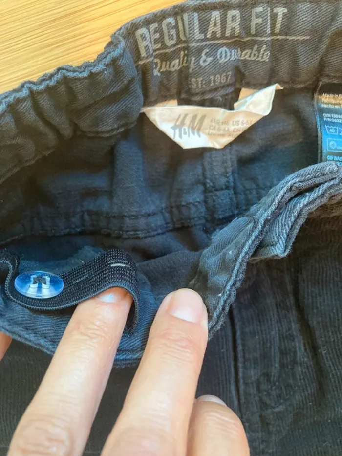 6 ans - pantalon noir matière velours côtelé fin avec élastique de réglage à l’intérieur.