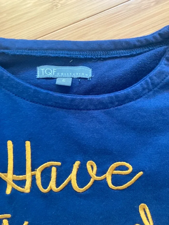 6 ans - Sweat bleu marine avec écriture doré et smiley