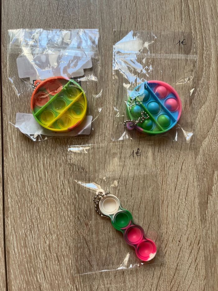 10€ le lot ou à l’unité : Porte clé pop’it 1€ pièce Pendentif ourson 1€ pièce Chaîne et ourson 1,50€ Idéal pour cadeau d’anniversaire pour les invitées