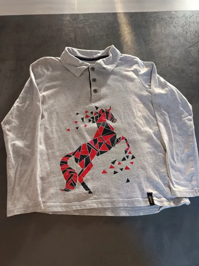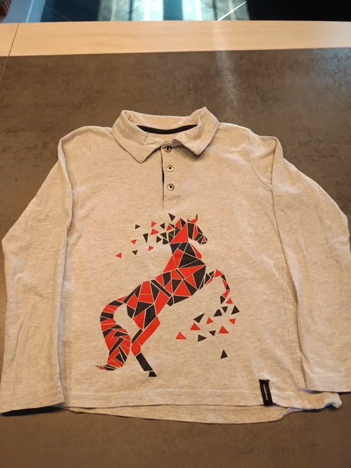 Vends tee-shirt manche longue d'équitation. De marque Fouganza. Taille 8 ans. En très bon, pas de trou ni de tâche. Envoi rapide et soigné.