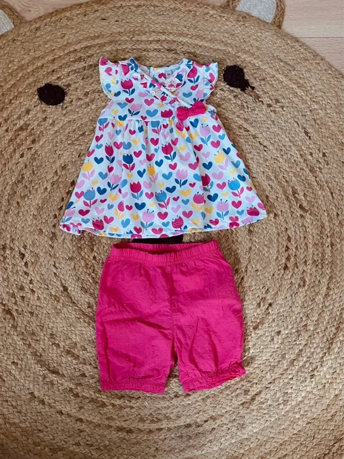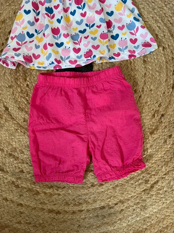 Ensemble comprenant un short rose et une tunique à motifs Neuf jamais porté Taille 6 mois #colinecvléchanges #colinecvlbebe6m