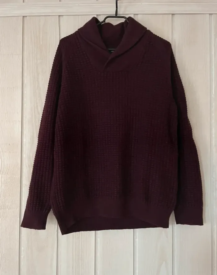 Pull bordeaux avec col châle Marque H&M Taille L 60% coton, 30% polyamide, 10% laine #sdelandeH #sdelandeHtailleL