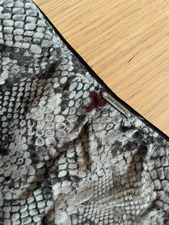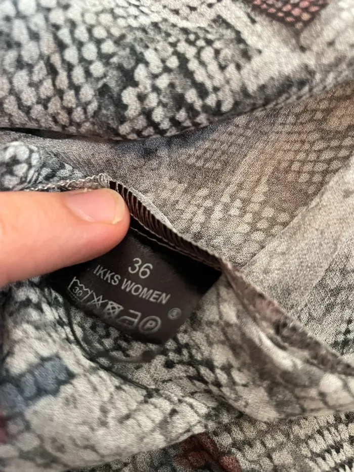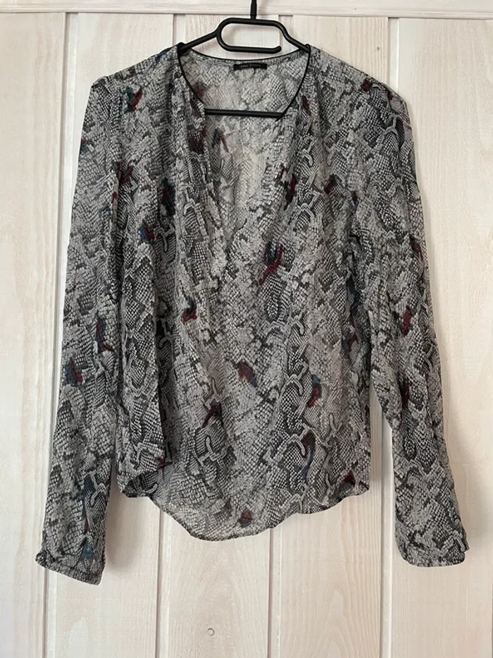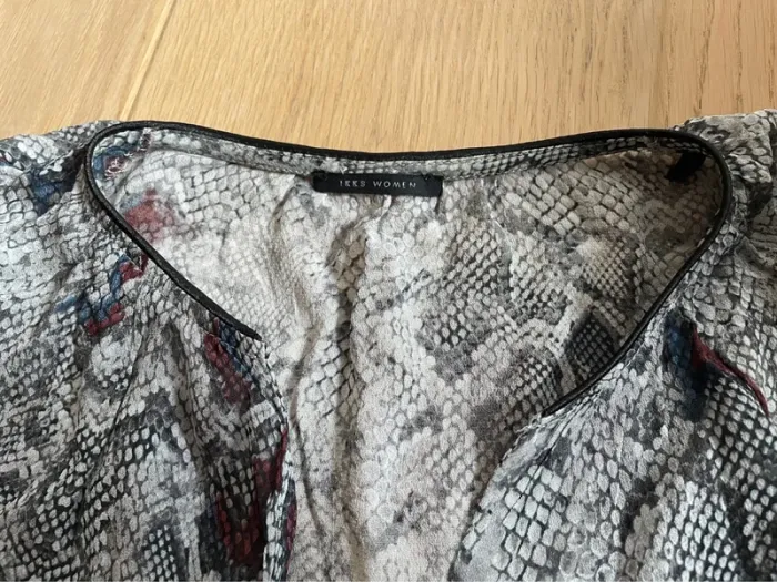 Blouse col V à manches longues Imprimé motif peau de serpent Très légère Marque IKKS Women Taille 36 À noter : un peu jauni sous les bras (cf photo)