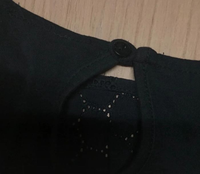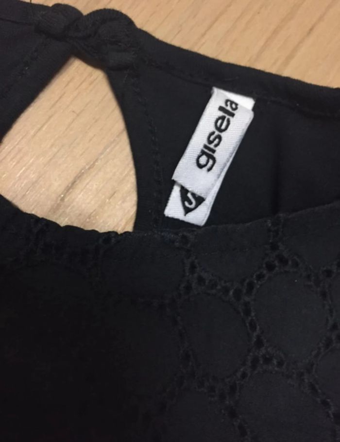 Robe noire en coton avec haut broderie/dentelle Taille élastique Marque Gisela Taille XS/S - Elle est courte #sdelandeF14a #sdelandeF16a #sdelandeF #sdelandeFxs34