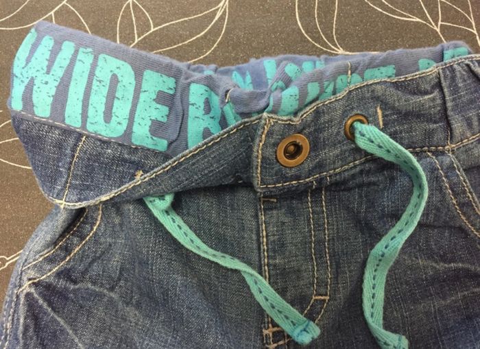 Bermuda/short en jean avec effet caleçon qui dépasse,m Taille élastique, cordons pour faire joli Pas de marque Taille 12 mois/1 an #sdelandeG12m