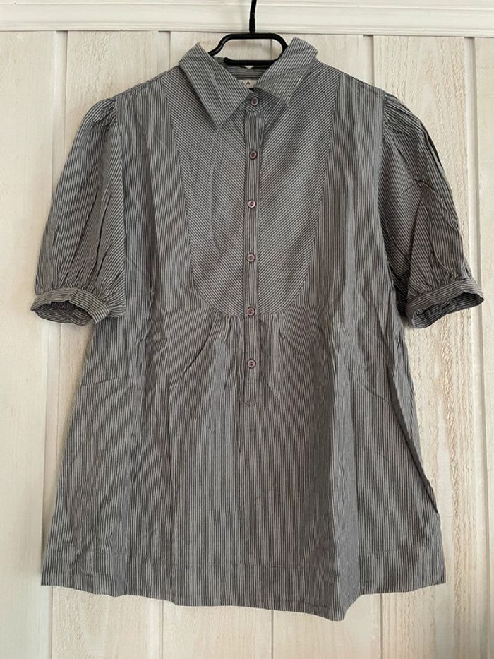 Blouse à manches courtes grise rayée blanc Marque VILA Clothes Taille M Taches sur la boutonnière, peu visibles (cf photo) #sdelandeF #sdelandeFm38
