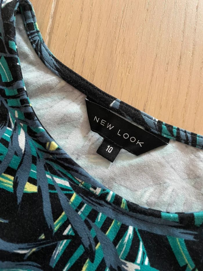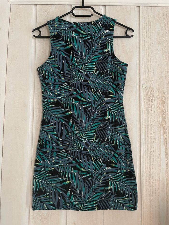 Robe sans manches en coton élastique, moulante, assez courte, à motif feuillage tropical Marque New Look Taille 38 étiquette mais convient du 34 au 38 #sdelandeF #sdelandeFxs34 #sdelandeFs36 #sdelandeFm38