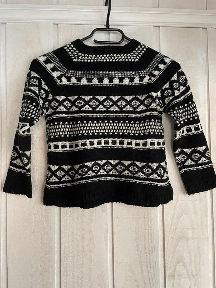 Pull en mailles noir et blanc Marque Zara Girl’s - Knitwear Taille 6 ans, 116cm Un peu distendu Étiquette composition coupée #sdelandeF6a