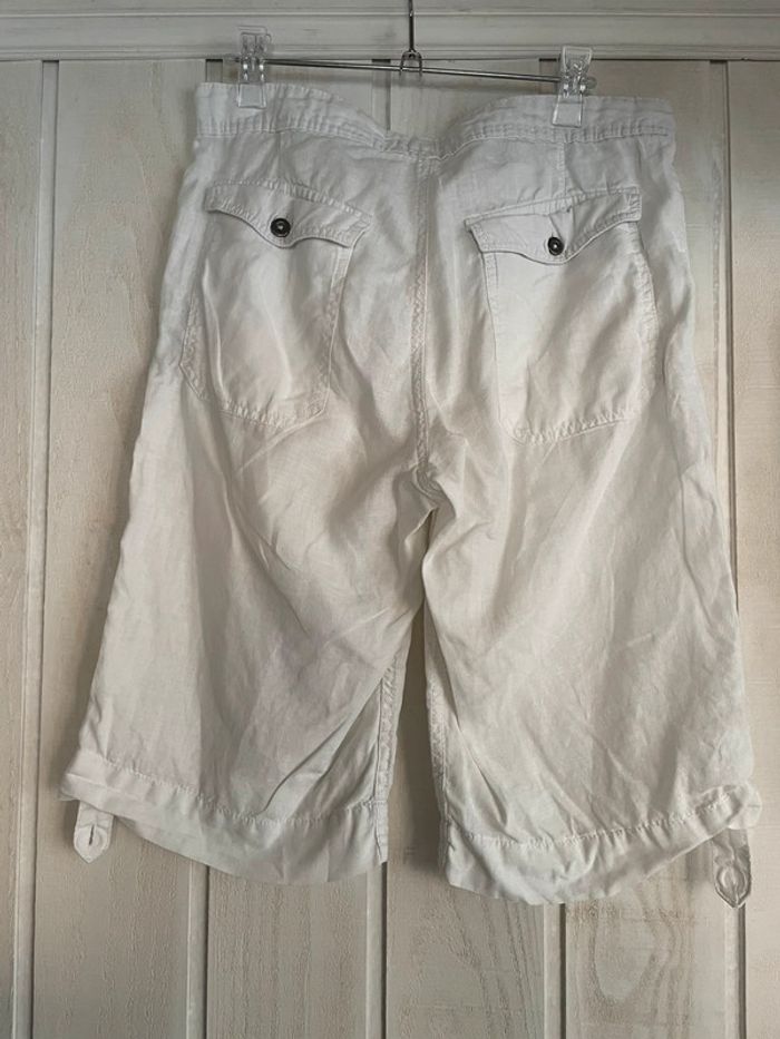Bermuda 100% lin blanc Micro tache et légèrement jauni aux endroits les plus touchés (cf photo) Marque H&M Taille 46