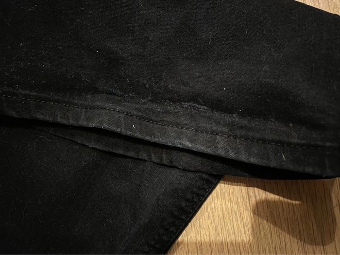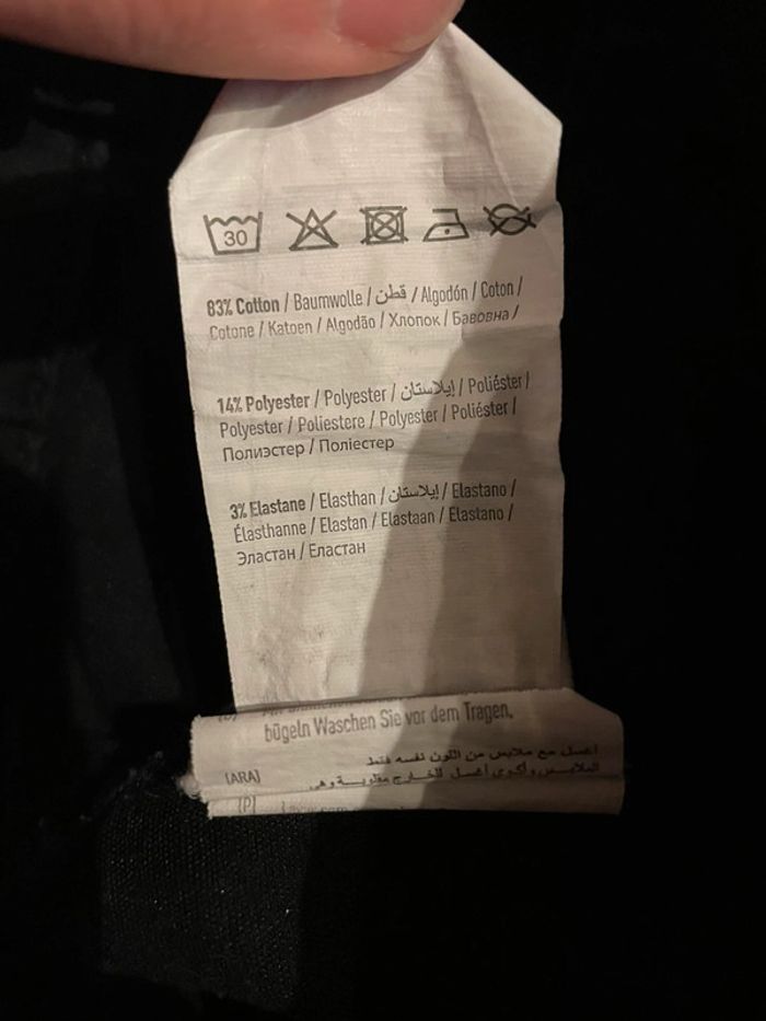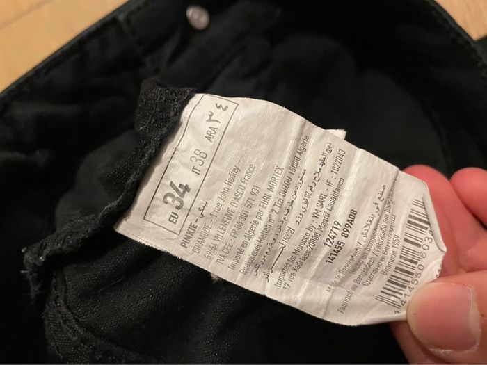 Pantalon noir taille haute, skinny, pattes d’éléphant Légèrement abîmé à l’arrière d’une jambe (cf photo) Marque Pimkie Taille 34
