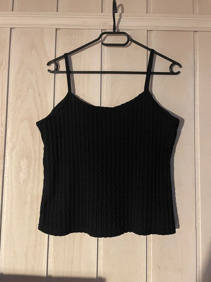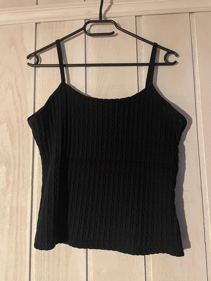 Haut court bretelle noir texturé - T46 - photo numéro 2