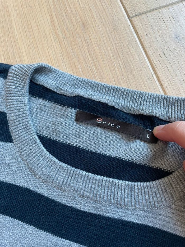 Pull col rond rayé gris chiné et bleu marine Marque Brice Taille L #sdelandeH #sdelandeHtailleL