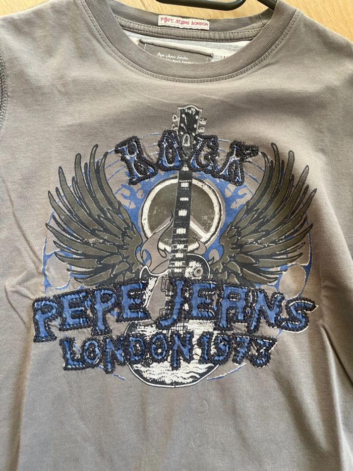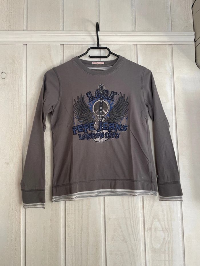 Tee-shirt à manches longues gris effet 2 en 1 Marque Pépé Jeans London Taille 8 ans Petite tache sur le bout d’une manche (cf photo) #sdelandeG8a