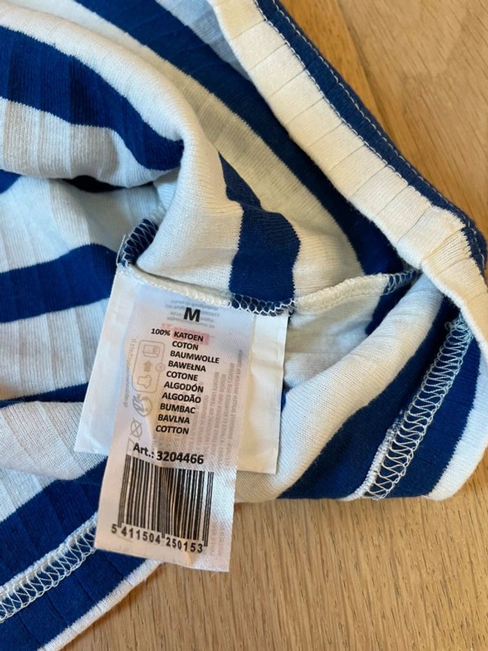 Tee-shirt manches courtes rayé blanc et bleu Coton côtelé épais Manches bouffantes Marque 9th avenue Taille M