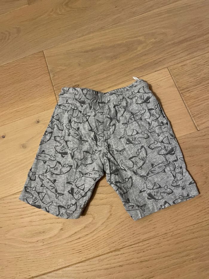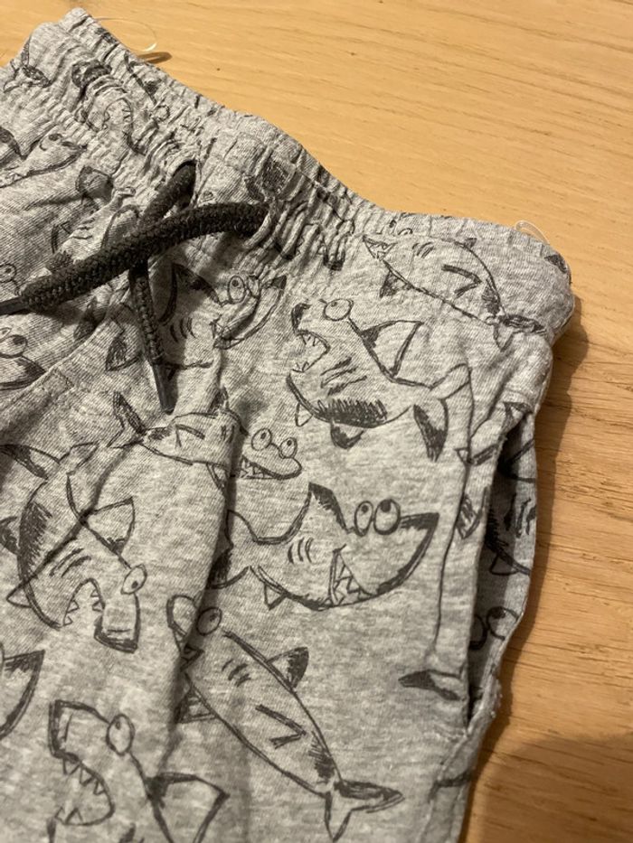 Short en coton gris chiné avec motifs requins Taille élastique avec cordon de serrage Deux poches devant Marque Palomino (C&A) Taille 3 ans, 98cm #sdelandeG3a