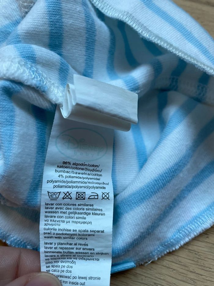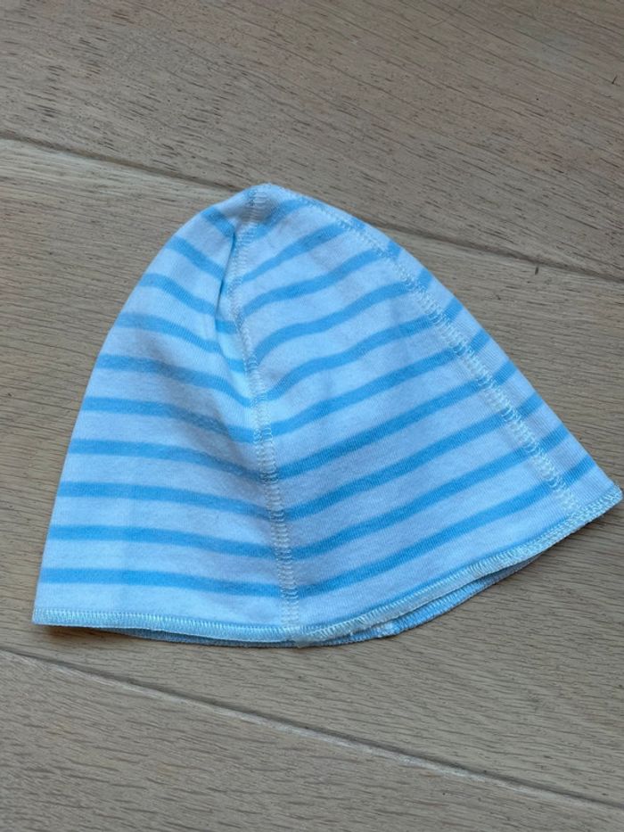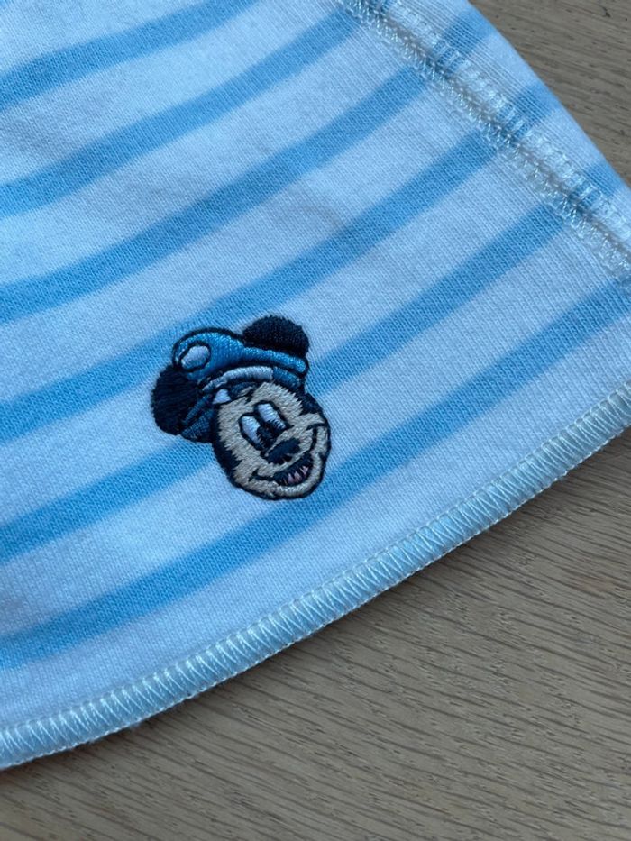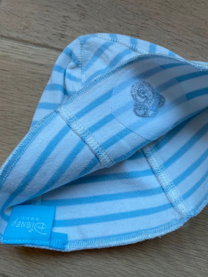 Bonnet de naissance en coton Blanc rayé bleu clair Broderie tête de Mickey marin Marque Disney Baby distribué par Carrefour Taille 0-1 mois #sdelandeG1m #sdelandeG0m