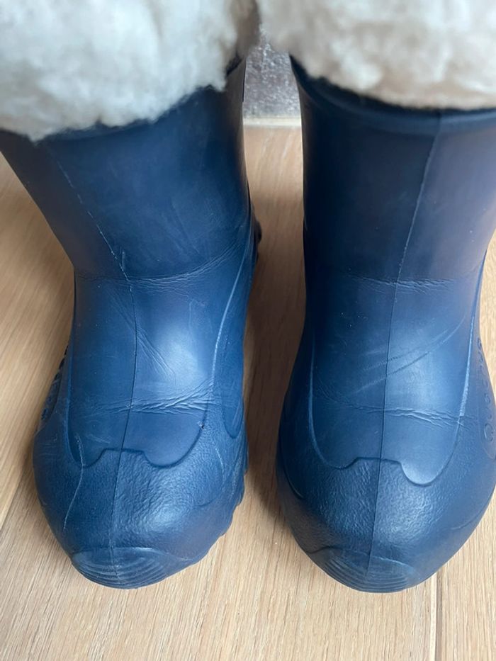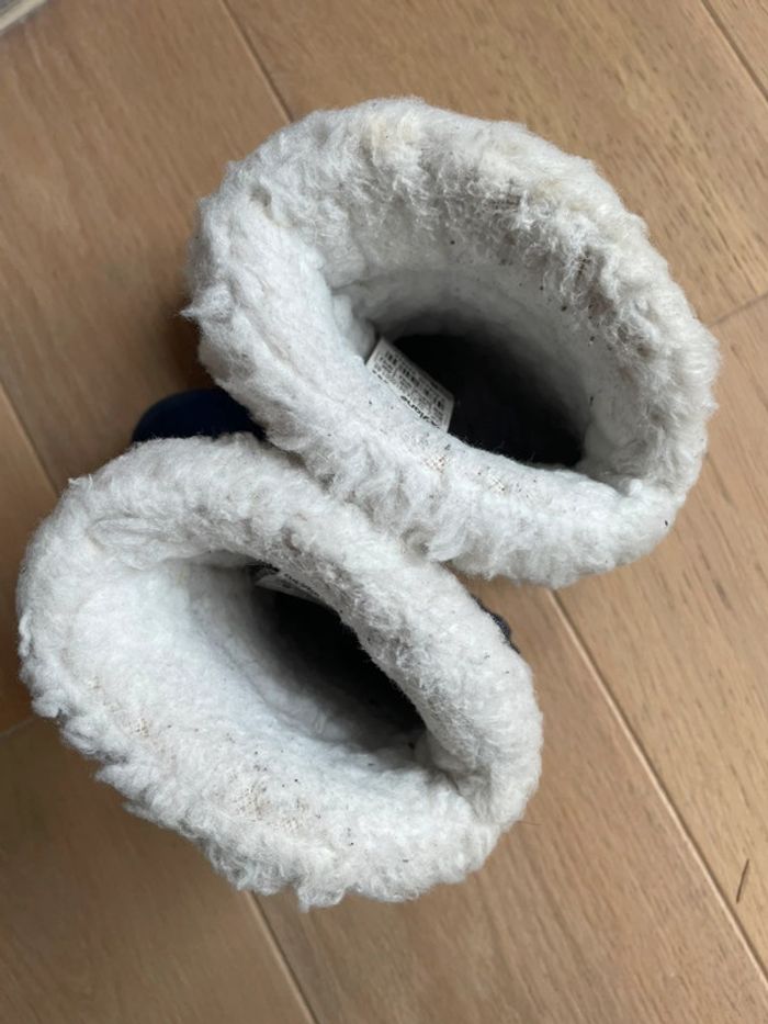 Bottes de neige marine fourrées Imperméables Chausson intérieur amovible Légères À noter : fourrure un peu salie, petites griffures (cf photo) Marque Quechua (Décathlon) Pointure 28/29