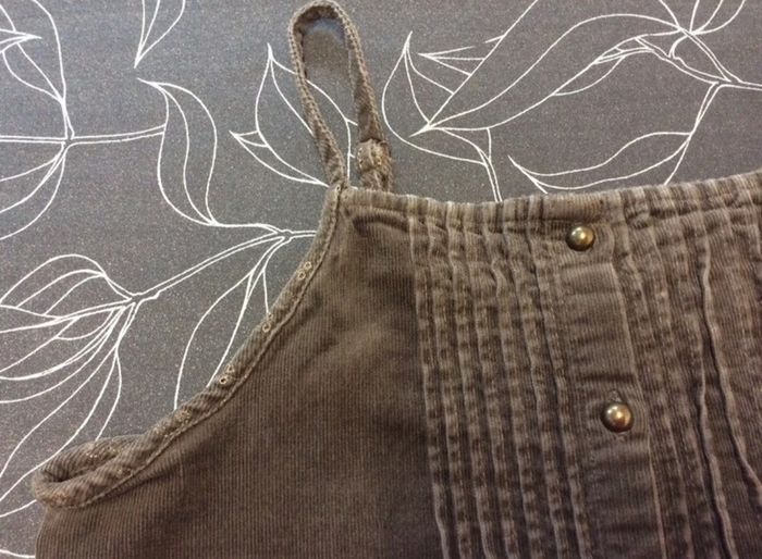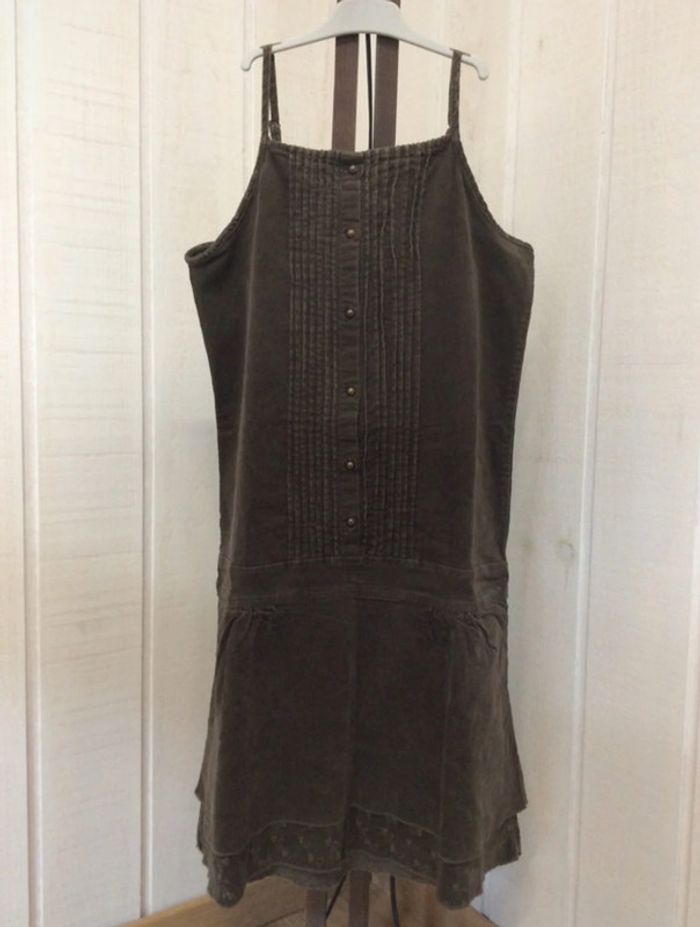 Très belle robe marron en velours côtelé, plissures et dentelle Bretelles réglables Marque Okaïdi Taille 14 ans, 156cm #sdelandeF14a
