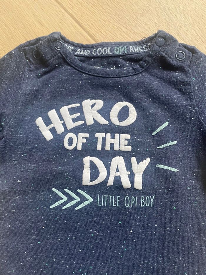 Tee-shirt bleu marine chiné manches longues « Hero of the day » 2 pressions de chaque côté Body manches longues kaki #sdelandeG1m