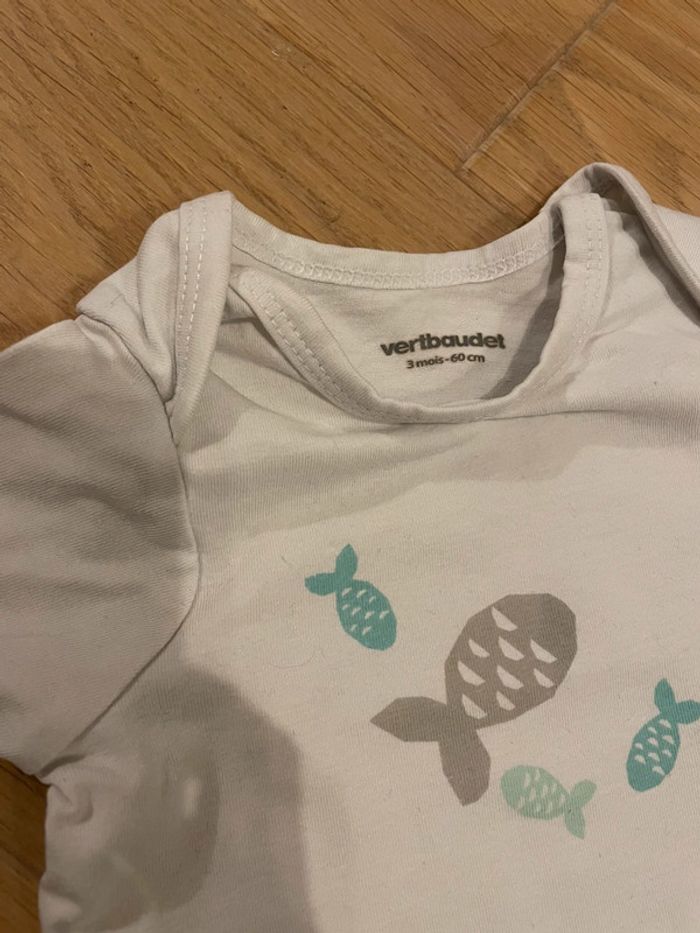Body à manches courtes blanc motifs poissons Marque Vertbaudet Taille 3 mois, 60cm #sdelandeG3m #sdelandeF3m 0,50€