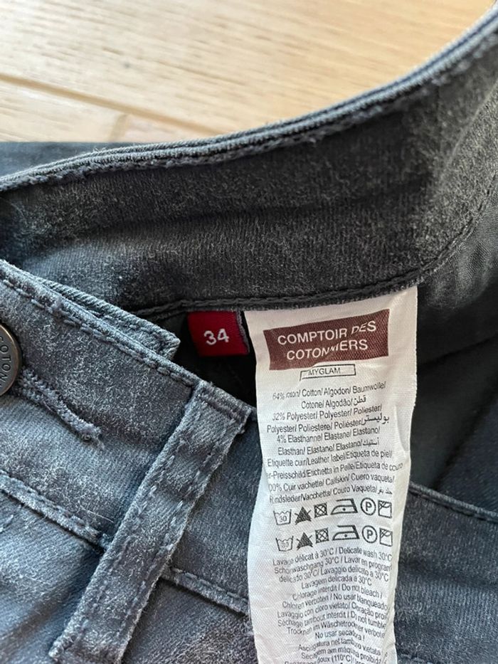 Pantalon gris foncé ciré/enduit Marque Comptoir des cotonniers Taille 32/34 (petit 34) Raccourci (coupé) : mesure depuis l’entrejambe = 64cm (cf photos)