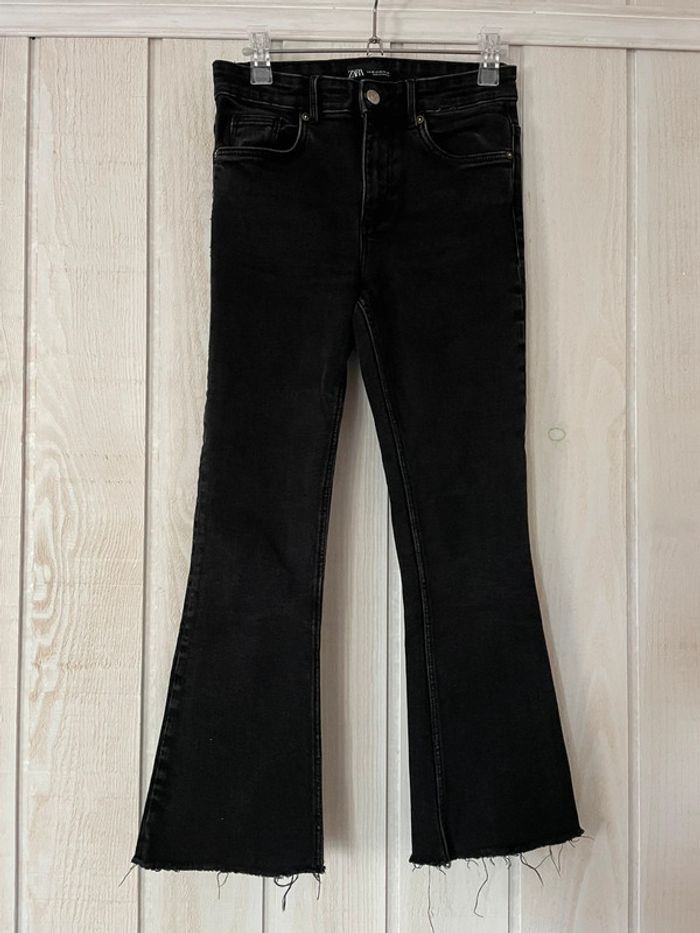 Jean noir skinny/slim, évasé dans le bas, avec taille haute « Épais », élastique, près du corps Marque Zara Taille 36 (petit 36/34) Assez court (mesure en photo)